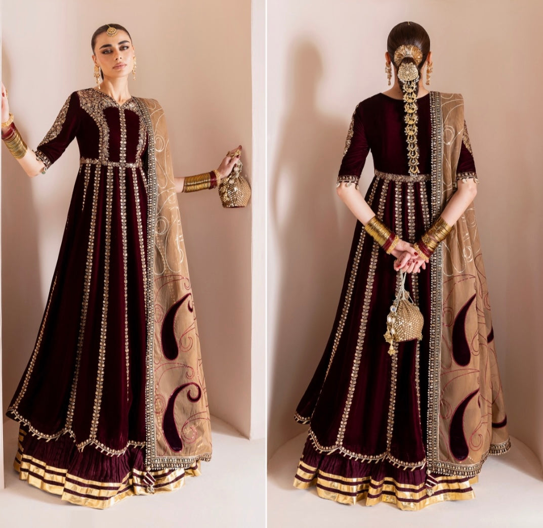 Embroidered Pure Velvet Front & Back Panels