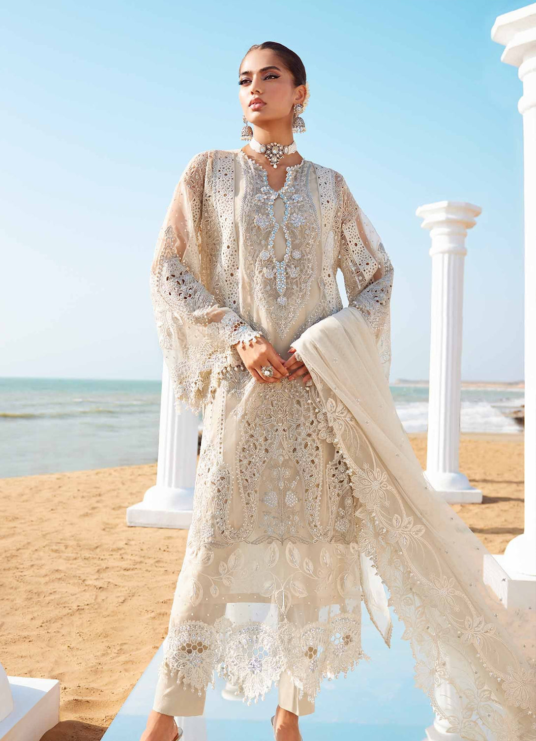 Embroidered Organza Center Panel With 3D Flowers, Pearls & Diamantes