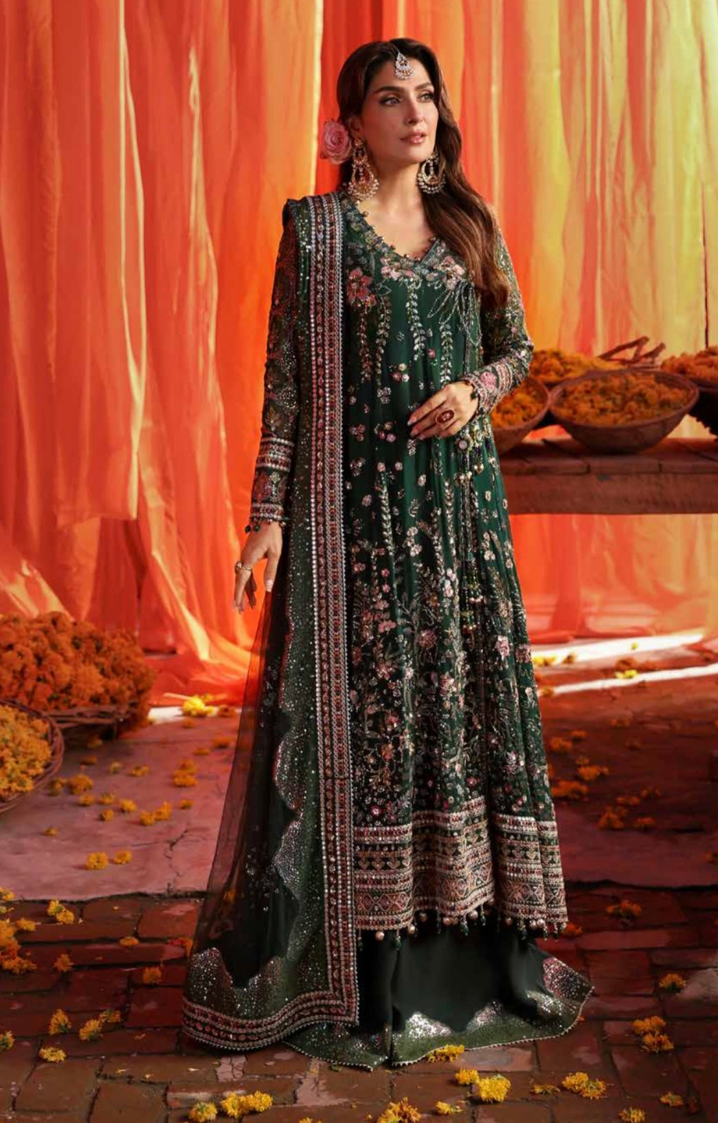 Embroidered Organza Front & Back Daman Border Embroidered And Hand Embellished Chiffon Sleeves
